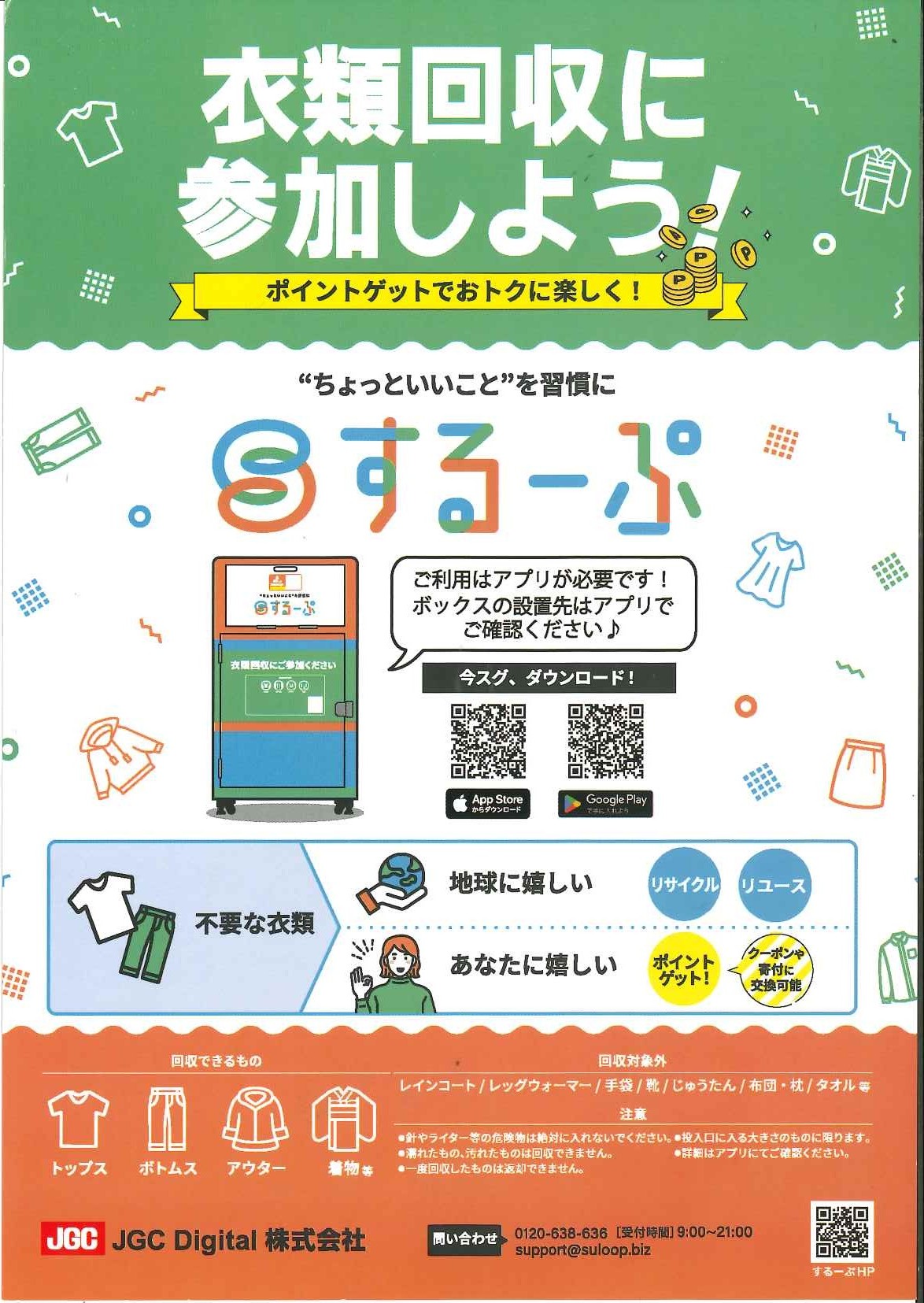2025年11月15日より、スマートフォンアプリ「するーぷ」を活用した衣類回収実証事業が始まりました。 設置場所:ニットーモール2階 スマートフォンアプリ「するーぷ」をダウンロードし、要らなくなった衣類を回収ボックスに投 […] -
